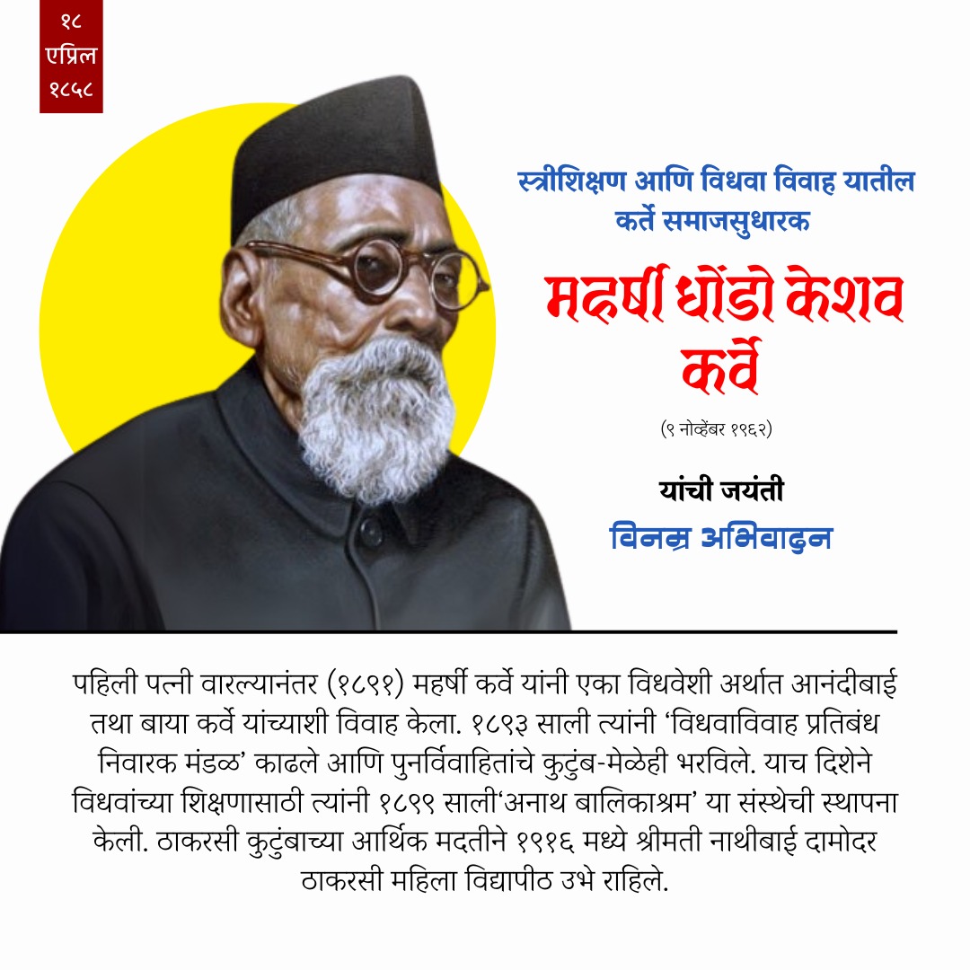 महर्षी धोंडो केशव कर्वे (१८ एप्रिल १८५८ - ९ नोव्हेंबर १९६२) हे एक समाजसुधारक होते, ज्यांनी आपले संपूर्ण जीवन महिला शिक्षण, विधवा पुनर्विवाह आणि समाजाच्या उन्नतीसाठी समर्पित केले. त्यांनी १९०७ मध्ये हिंगणे(पुणे) येथे मुलींची शाळा सुरू केली आणि १९१६ मध्ये भारतातील पहिल्या महिला विद्यापीठाची स्थापना केली. तत्पूर्वी ३१ डिसेंबर १८९३ रोजी त्यांनी पुण्यात 'विधवा विवाहोत्तेजक मंडळी' स्थापन करून त्याद्वारे विधवा पुनर्विवाहासाठी जागृती मेळावे आयोजित केले. आपल्या पत्नीचे अकाली निधन झाल्यानंतर त्यांनी एका विधवेशी (आनंदीबाई) पुनर्विवाह केला व समाजासमोर एक कृतिशील आदर्श ठेवला.