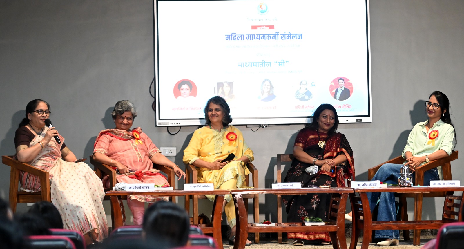 संमेलनात दुपारी 'माध्यमातील मी' या परिसंवादात प्रा. डॉ. उज्ज्वला बर्वे, सकाळच्या सहयोगी संपादक मृणालिनी नानिवडेकर, एबीपी माझा वृत्तवाहिनीच्या संपादिका सरिता कौशिक, आर. जे. शोनाली यांनी आपले अनुभव मांडले. संवाद सत्राचे समन्वय साप्ताहिक विवेकच्या संपादक अश्विनी मयेकर यांनी केले.
