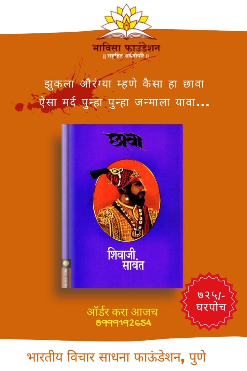 छत्रपती संभाजी महाराज यांचा अग्निदिव्य जिवन प्रवास सांगणारी महाराष्ट्रातील प्रसिद्ध कादंबरी "छावा" आता घरपोच मिळवा.