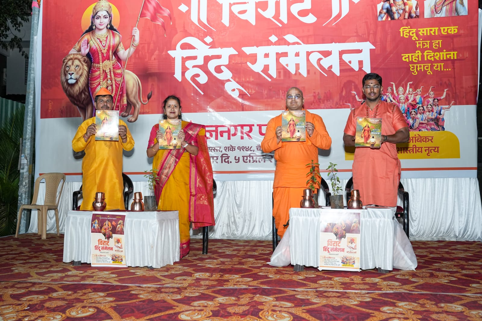 "भारतमातेला पुन्हा एकदा परम वैभवाकडे नेण्यासाठी आणि हिंदू धर्म, संस्कृती व समाजाच्या रक्षणासाठी संघटित शक्ती उभी करणे ही काळाची गरज आहे," असे प्रतिपादन मान्यवरांनी येथे व्यक्त केले. सन सिटी रोडवरील निंबज नगर परिसरात आयोजित ‘विराट हिंदू संमेलनात’ ७५० हून अधिक हिंदू बांधव-भगिनींनी राष्ट्रनिर्मितीचा दृढ संकल्प केला.